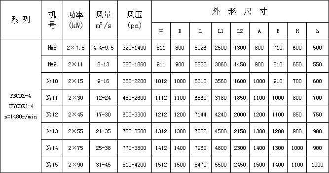 FBCDZ(FYCDZ)系列礦用防爆(非防爆)抽出式對(duì)旋軸流通風(fēng)機(jī)適用于大、中、小型礦井地表做抽出式通風(fēng)。風(fēng)機(jī)采用葉輪與電機(jī)軸直聯(lián)方式,可減少基建工作,克服山體滑坡造成的影響。葉片安裝角度可調(diào),高效區(qū)域寬闊,可直接進(jìn)行反轉(zhuǎn)反風(fēng)。兩級(jí)葉輪互為導(dǎo)葉,減少內(nèi)耗,提高了運(yùn)行效率。